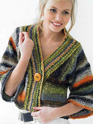 This design is featured in Flowers by Jenny Watson, a book from Noro, and uses Noro yarn