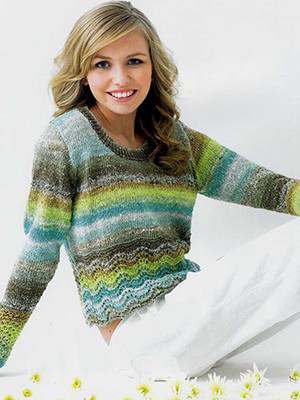 This design is featured in Flowers by Jenny Watson, a book from Noro, and uses Noro yarn