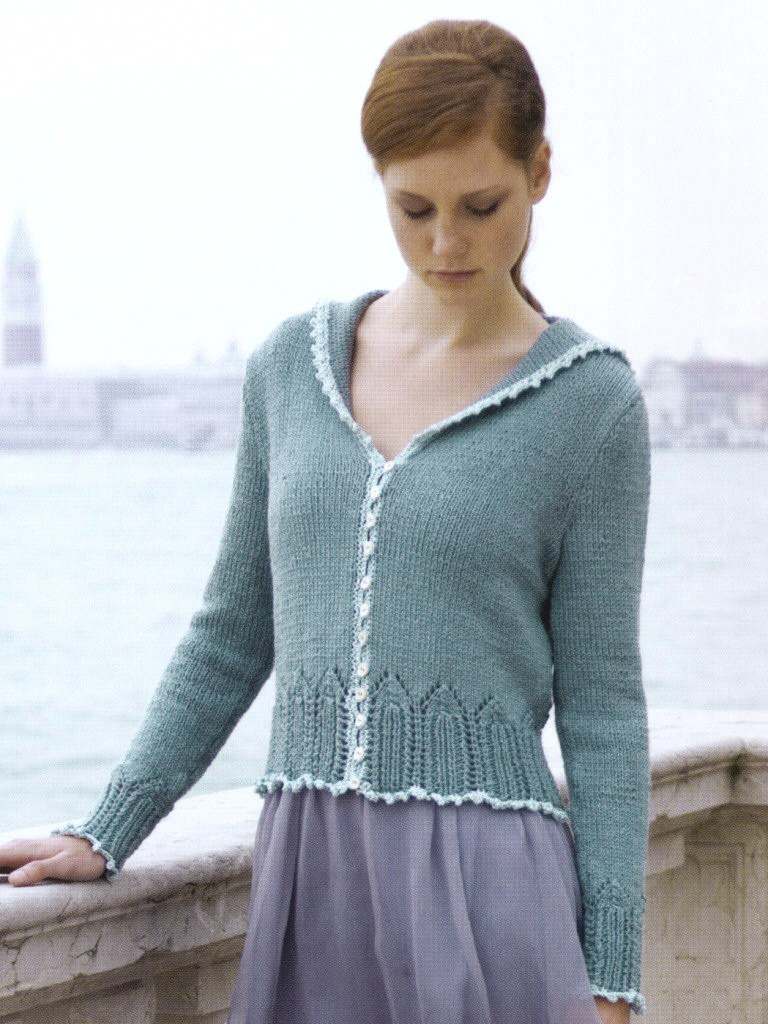 This design is featured in Cardigans, a book from Louisa Harding, and uses Louisa Harding yarn including Glisten