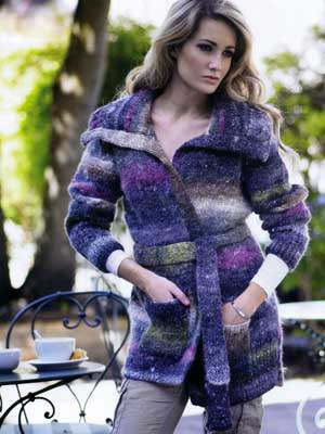 This design is featured in City Girl by Jenny Watson, a book from Noro, and uses Noro yarn including Kochoran