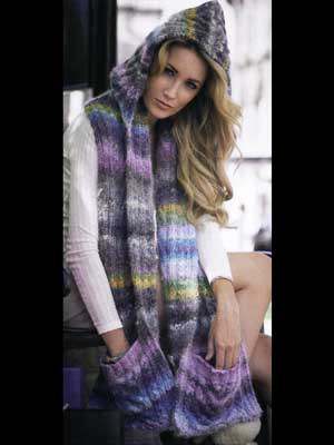 This design is featured in City Girl by Jenny Watson, a book from Noro, and uses Noro yarn including Kochoran