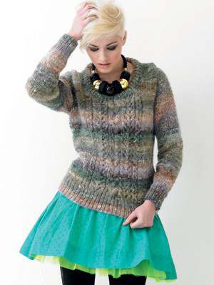 This design is featured in Now! by Jenny Watson, a book from Noro, and uses Noro yarn including Nadeshiko