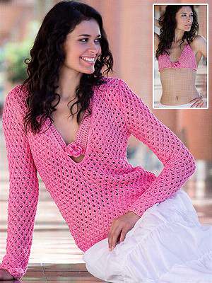 “Net sweater with bikini top”