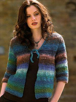 This design is featured in Pure Noro by Jane Ellison, a book from Noro, and uses Noro yarn including Silk Garden