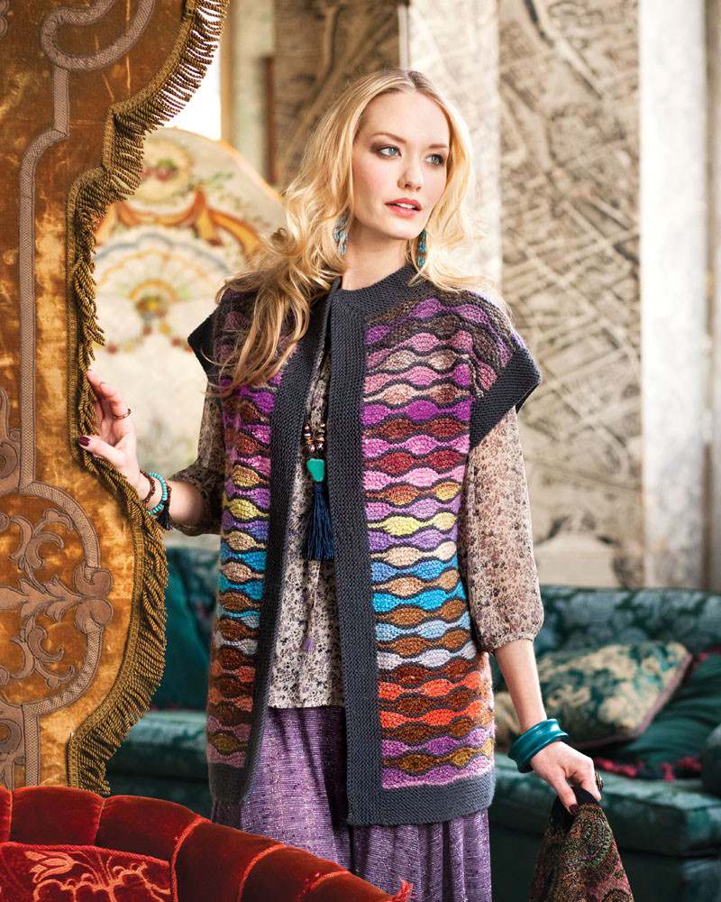 Designed by Ann klimpert using Noro Silk Garden #357 and #387 and aran-weight wool.