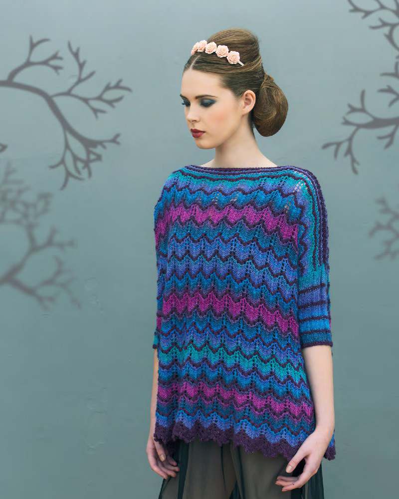 This design is featured in Odense, a book from Louisa Harding, and uses Louisa Harding yarn including Amitola