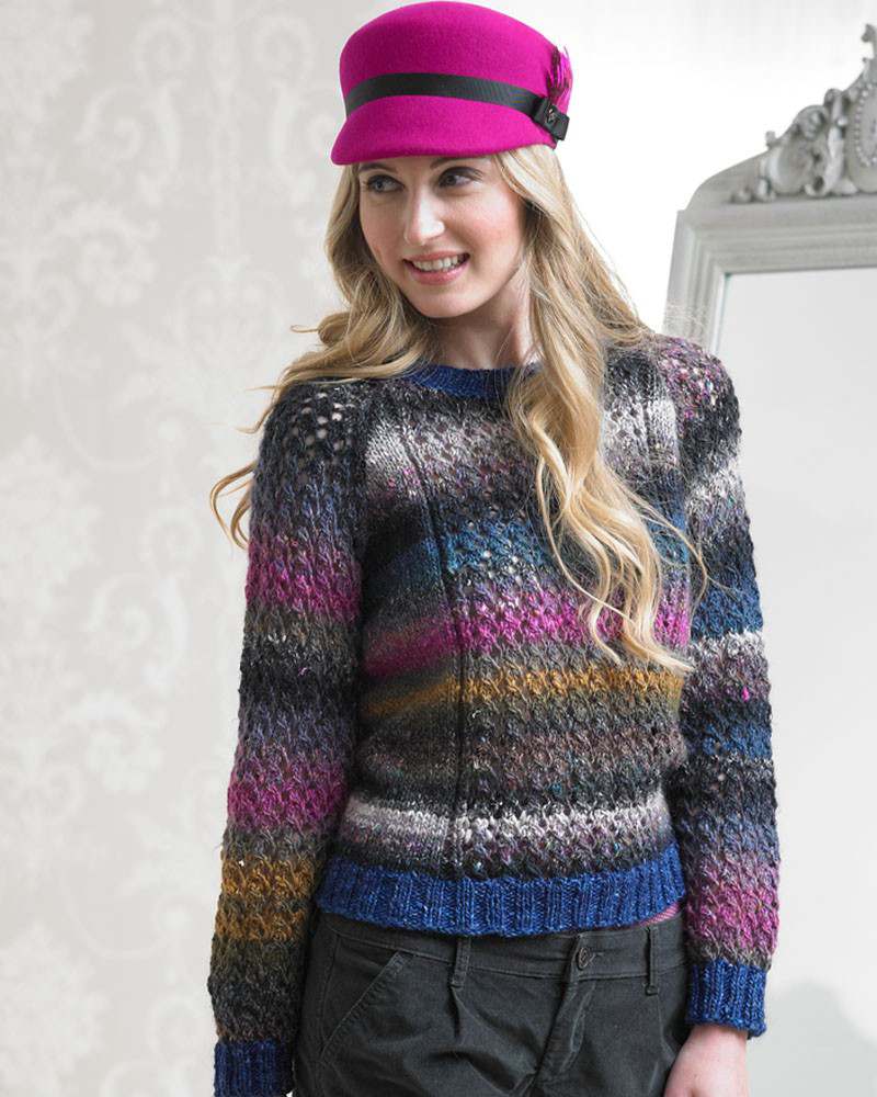 This design is featured in Boutique by Jenny Watson, a book from Noro, and uses Noro yarn including Silk Garden, and Silk Garden Solo