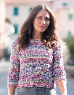 The speckled and striping colors of this cotton tape yarn add extra interest to your finished garment. Because of the yarn's construction, you can knit or crochet it at a bulky gauge for quick projects that won't weigh you down.