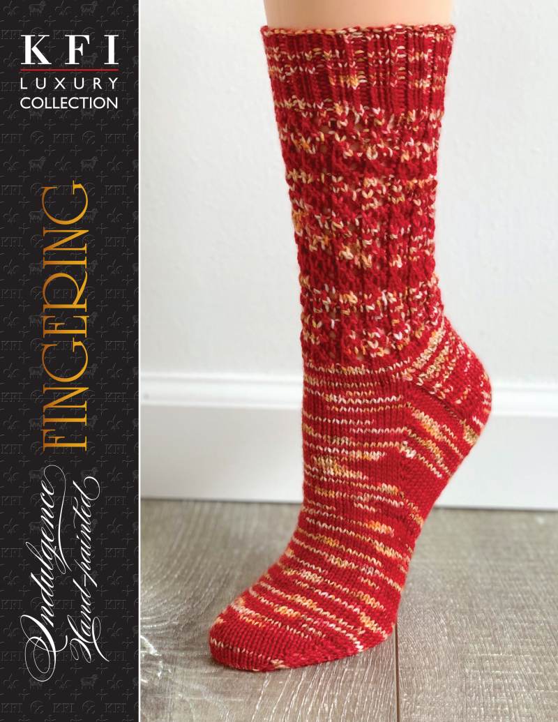 Indulgence Fingering - San Mateo Socks: A pad featuring KFI Collection yarn