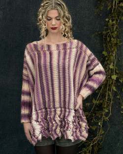 This bulky weight wool/silk blend is available in a range of self-striping colors. The thick-and-thin striping pattern adds extra interest to your finished garment.
