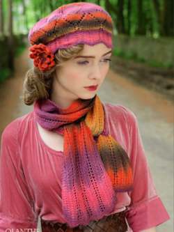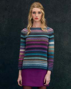 This lightweight wool/silk blend practically glows. The long color changes make for effortless stripes. A stylish choice for hand knit or crocheted garments and accessories.