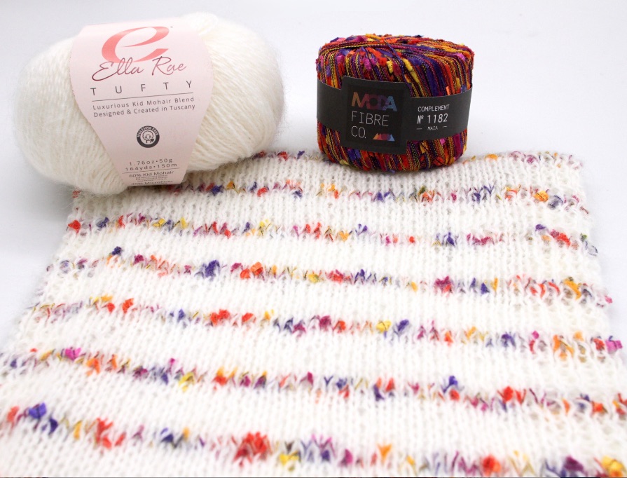 Maia, shown here in color #04 Coral Reef, knitted with Ella Rae's Tufty in color #100 Opal