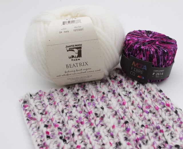 Vela, shown here in color #09 Impulse, crocheted with Juniper Moon Farm's Beatrix in color #04 Ivory