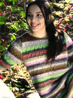 The blend of fibers in Kirara creates a fabric with wonderful drape, and since it's from Noro, it's full of color! Kirara is a great choice for one-of-a-kind, light weight garments, accessories, and more.