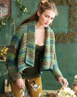 This Aran weight yarn with fantastic stitch definition suited for textured pieces. The flecks of colors throughout make an equally interesting garment when knit in plain stocking stitch.