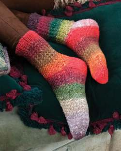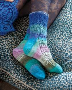 Sock weight version of ever popular Taiyo, this cotton, silk, wool & nylon yarn has wonderful sheen & next to skin softness, in gorgeous Noro colors.